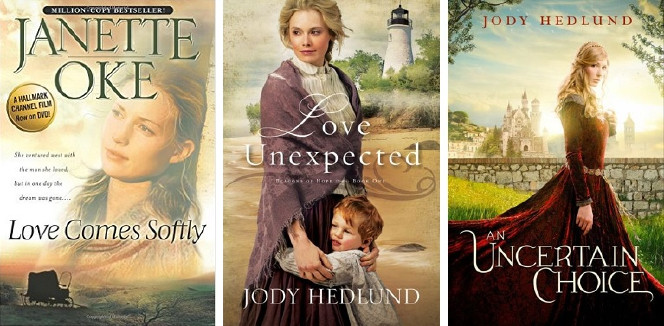 Janette Oke started the inspirational romance genre with this hugely popular book, "Love Comes Softly." Set in frontier/pioneer times, it's a really sweet read about a woman whose husband dies tragically and she quickly marries another to survive. It is the first book in a long series that follows the family. Oke has written many other series and books as well.