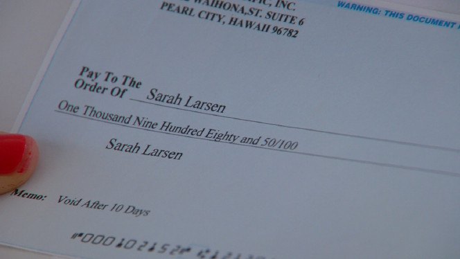 "It looks like a generically-printed check," said Larsen. "It doesn't look legit to me."