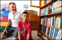 Mathew donated about 3,500 books that were piled high in his family's apartment and on their back deck.