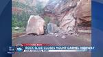 The large rocks fell on the highway about 4:30 a.m. about 200 feet from the Pine Creek Bridge on a switchback near the Mount Carmel Tunnel, according to park officials. The largest boulder is around 19 feet high, 20 feet long and 15 feet wide and officials said it weighs around 200 tons. The second boulder measured at approximately 10 feet high, 10 feet long and 15 feet wide, weighing about 100 tons.