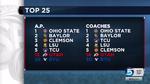 Ohio State remains the No. 1 team following a bye week. The Buckeyes received 39 first-place votes. The Buckeyes are followed by Baylor, Clemson, LSU, and TCU in the AP Poll.