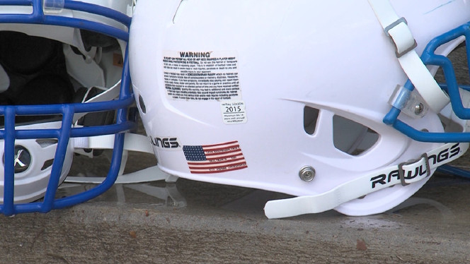 "If I'm tired, I just think of the helmet, the flag on the back of my helmet and he sacrificed everything so we can play football and so that gives me motivation," said running back Matthew Hammond.