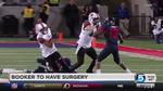 Booker, who is the focal point of Utah's offense, will undergo a minor meniscus surgery Thursday and is expected to miss the remainder of the regular season. Booker sustained the injury to his knee midway through Utah's game last week against Arizona, but came back to play in the second half.
