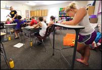 Last August, Starrett and her husband worked to get 25 standing desks in their daughter's fourth-grade classroom in her public elementary school. After they raise $150,000, all 450 students in the school, even kindergartners, will be standing by January, Starrett said.