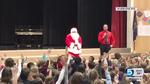 The man in the red suit visited one of the kid's schools, Riverview Elementary, Wednesday, during a holiday talent show assembly.