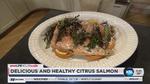Salt the Salmon then place herbs on Salmon and lay atop sliced oranges.