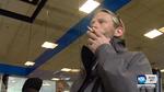 Jeanna Timgey, of Harrisville, was enjoying a cigarette in one of the airport's smoking lounges Friday when she was told about the bill. She said it would aggravate an already stressful travel experience for smokers.