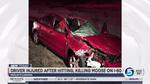 The woman was driving a red Mazda westbound on I-80 around 11:30 p.m. when her car hit the moose in the left lane near mile post 134, according to Utah Highway Patrol.