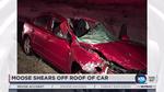 The animal hit the car's windshield, then flew over the top of the car and took the roof with it, troopers said.