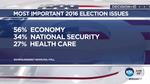 The economy was mentioned as important by 56 percent of all respondents, ranking well ahead of any other issue. National security followed at 34 percent and health care next at 27 percent. Dan Jones & Associates conducted the survey March 8-15.