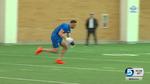 Mathews out-jumped the field with a 38-inch vertical leap and a 10-foot, 9-inch broad jump — both personal bests. He then blew away the crowd of onlookers with his 40 time, finishing in an unofficial time of 4.42 seconds.