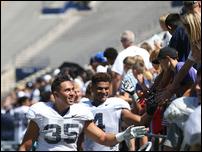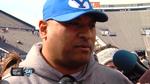 “There’s been a big excitement you can feel in the area with the new coaches, new system and new team coming in,” said quarterback Tanner Mangum, who completed 6-of-8 passes for 92 yards and a touchdown in scrimmage play. “I’m not surprised, and Cougar fans are awesome. I’m glad we could have a sunny day for the fans; it was fun.”