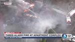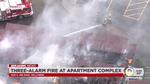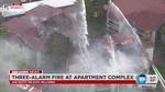 Firefighters continued to battle hot spots at the apartment complex through about 5 p.m.