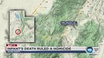 MONROE, Sevier County — The death of a 1-year-old girl Tuesday in Monroe was being investigated as a homicide, police said.