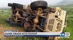The dump truck tipped on its side after crossing U.S. Route 40, according to Royce. He said the soldiers inside the truck sustained minor injuries and were transported to the Heber Valley Medical Center by ambulance.