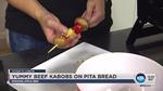 Grill meat and veggies on the skewers until they are cooked and place them on pita bread and eat like a hotdog or taco.