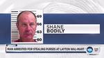 Shane Allan Bodily, 46, was arrested and booked into Davis County Jail, said Layton Police Sgt. Clint Bobrowski. Bodily returned to the same Wal-Mart where he stole two purses from a shopping cart last week. The store’s loss prevention department recognized Bodily on camera and contacted police.