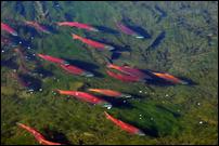 There are several reservoirs in Utah that contain kokanee salmon, and during late August through early September, they will turn from their silver appearance to a bright red as they swim upstream to spawn. After their eggs are laid in the riverbed, the salmon will die.