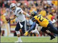 Boy, was I wrong. WVU came out swinging from the very get-go on offense. They scored on their first drive, and Skylar Howard and the rest of the O hardly slowed down the rest of the game. Howard sliced and diced the secondary on his way to 332 passing yards and completed nearly 78 percent of his passes. The Cougs clearly were overmatched in terms of speed as they struggled to tackle in space and to keep up with Mountaineer receivers running deep patterns. The defense's poor showing should worry BYU fans some about the prospects of joining the Big 12 since numerous other strong teams in the conference (Oklahoma, Texas, Baylor, Oklahoma State, TCU) run a similar offense to WVU.