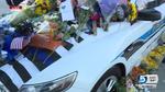 Brotherson's patrol car was placed at the Promenade plaza Monday. Since then, it has become a central gathering place for the community to mourn and express their thanks to the fallen officer and the West Valley Police Department.