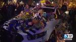 Bouquets of flowers and messages addressed to Brotherson now cover the hood and roof of the car. One of Brotherson's friends could be seen Wednesday night weeping openly as he buried his head into the hood of the car.