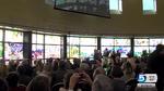 The crowd gets a close look at the stained glass after the unveiling of the “Roots of Knowledge." Photo: Jay Drowns, UVU Marketing