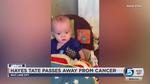 HOLLADAY — 20-month-old Hayes Tate died peacefully at 10:30 p.m. Saturday night surrounded by his family, the child's family confirmed.