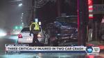 SALT LAKE CITY — Three people were critically injured in a two-vehicle accident Saturday night at a Redwood Road intersection. Six others were sent to the hospital after an eight-vehicle crash earlier in the day.