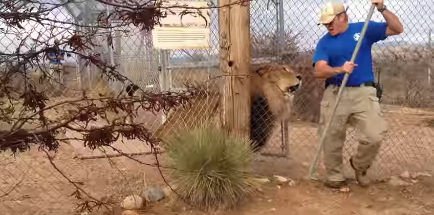 All of this is a high-falutin leadup to say that sometimes it’s really difficult — like, really, really difficult — to practice what you preach. Just ask this zookeeper in this video who is working with a lion during a demonstration at the Out of Africa Wildlife Park in Campe Verde, Arizona.