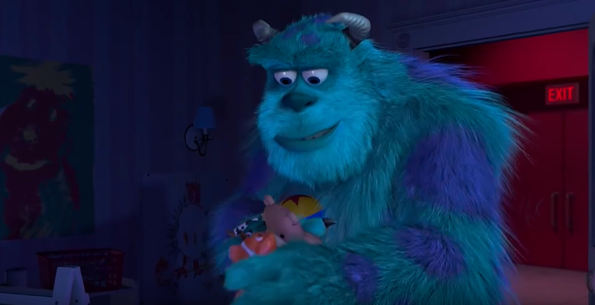 The 1-year-old does a very convincing job, and hopefully mom was able to giggle despite being green.