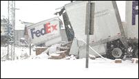 On Jan. 21, a semitrailer hauling two Federal Express trailers was crossing the railroad tracks at 1100 North in North Salt Lake when the first trailer was destroyed by an oncoming train, barely missing the cab. The crash was captured on video by a North Salt Lake police officer who was also about to cross the tracks but stopped.