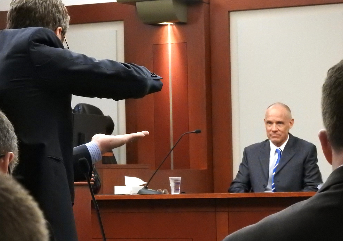 Hruby-Mills then brought all 12 jurors back, talked to them for a few minutes and excused them from the courtroom. Two attorneys then took seats in the jury box, while others sat in random places in the gallery, apparently looking at sightlines.