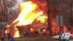Bauman didn't have any additional information about the rescue, but a bystander's video shows the man slowly making his way off of the roof of the burning home, into the arms of three firefighters. Flames, reaching high above the home itself, can be seen raging several feet away.