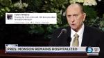 SALT LAKE CITY ā LDS Church President Thomas S. Monson continued to rest and recover in the hospital late Wednesday afternoon, despite unfounded rumors that he had died.