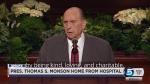 President Monson, 89, was hospitalized Monday and received treatment and fluids after not feeling well. Despite unfounded rumors on social media that he died, President Monson remained in the hospital until Wednesday.