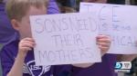 Tay Gudmundson, from Utah County, drove her three sons and her daughter — ages 2, 4, 6 and 8 — to the Thursday rally. Her boys held signs saying, "Sons need their mothers," and "ICE is unethical."