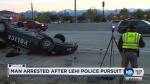 LEHI — A man has been arrested in connection with a Saturday chase on I-15 that sent a Bluffdale police officer to the hospital with minor injuries and wrecked his patrol car.