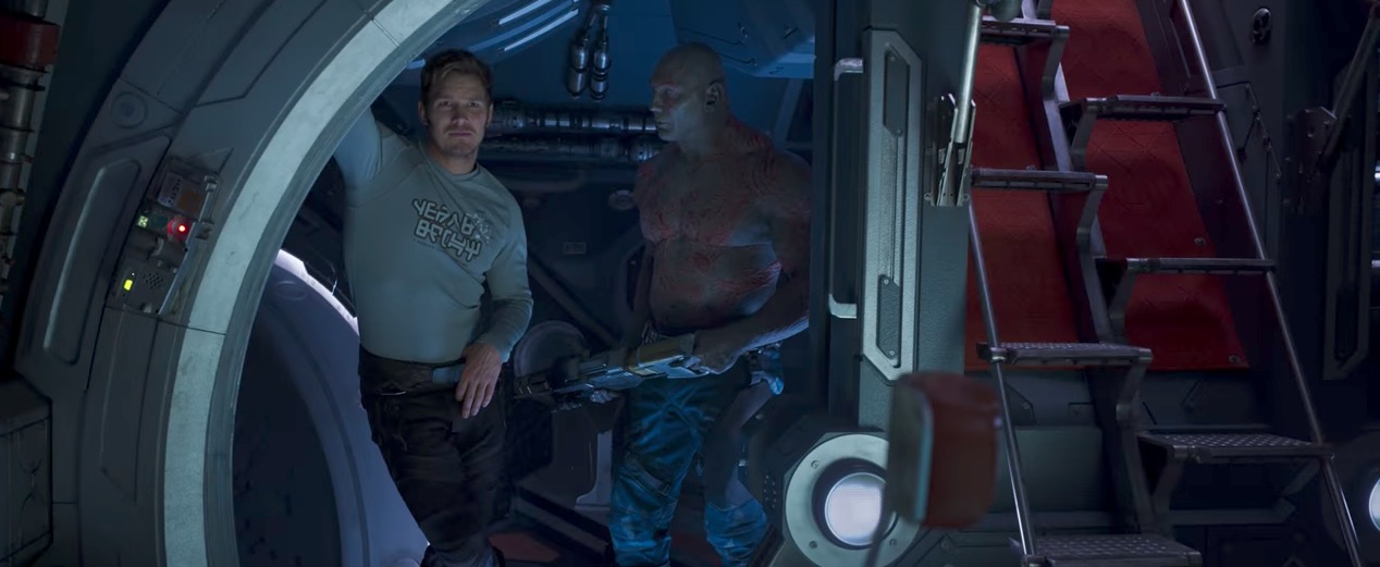 Aside from that, there are some adult jokes much like in the first film and the gratuitous shot of Chris Pratt shirtless. The shirtless hero is a staple of Marvel's, at this point.