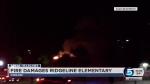 The fire was reported just after midnight. It started on the roof above the kindergarten rooms, said Alpine School District spokeswoman Kim Bird. A photo posted by the district shows a blackened hole on the roof about 30 feet in diameter.