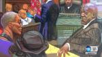 Cosby's wife of 53 years, Camille, was in the courtroom for the first time in the trial. She was stoic during the defense argument but left when it was the prosecution's turn. She sat in the front row, across the aisle from Constand, who didn't react to McMonagle's two-hour closing but smiled at the end of it.