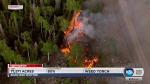 On Saturday, firefighters worked along the north end of the fire, trying to burn up dry fuel ahead of the areas where wildfire activity is most prevalent, in efforts to further contain the blaze. Thunderstorms and high winds in the midmorning increased some of the fire behavior, preventing aerial burn operations and forcing ground crews to use hand ignition methods to burn up fuel sources.