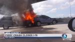 SALT LAKE CITY — Northbound I-15 at 2100 South in Salt Lake City has reopened after flames engulfed two cars Wednesday afternoon following a crash, according to the Utah Department of Transportation.