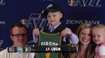 Like the rest of the Jazz rookies, JP signed his contract (in purple crayon), took his turn at the rookie dance off, and received a roaring cheer when he combined with teammate Rudy Gobert for a thundering dunk in a team scrimmage.