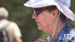 Heaps is a Caucasian male with brown hair and blue eyes. He is 5 feet 9 inches tall and weighs 175 pounds. Heaps is believed to be wearing a red long sleeve shirt and blue jeans with suspenders, according to police. He typically hikes with a straw hat.