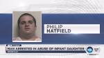 Hatfield said he had been arguing with his wife and wanted to show her he could kill the infant, police said. He told police he had retrieved the infant from her bed downstairs, threw her against the wall, threw her down onto a pool table and rubbed broken glass in her eyes, according to jail records.