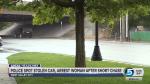 A "short pursuit" ensued through the Valley Fair Mall area before the woman drove through a field and crashed through a brick wall gate, Lloyd said.