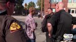 Ray wore a bulletproof vest given to him by the Salt Lake County Sheriff's Office as he watched them arrest a woman with several warrants who had a syringe and other drug paraphernalia with her.
