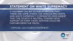 “It has been called to our attention that there are some among the various pro-white and white supremacy communities who assert that the church is neutral toward or in support of their views. Nothing could be further from the truth," Tuesday's church statement begins.
