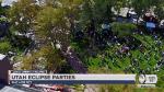 A few blocks away at the Triad Center, 95 N. 300 West, crowds of people attended the KSL solar eclipse viewing party. Many tried covering their phone cameras with eclipse glasses to take photos of the sun.