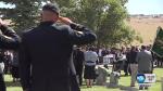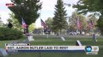 The service concluded with a tearful graveside ceremony — including a 21-gun salute, the playing of taps and a helicopter flyover — where Butler's family gathered close to the casket to say their goodbyes. Members of Butler's Special Forces group presented Laura Butler, Aaron Butler's mother, with the flag that had draped her son's casket, while two folded flags were touched tenderly to its lid before being given to Butler's sister and fiancee.